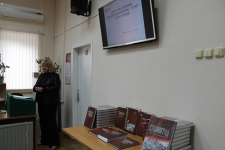 С докладом об истории создания Центра и подготовленных за 10 лет работы изданиях выступила заместитель научного руководителя Центра по изучению Сталинградской битвы, к.э.н., доц. И.А. Лысенко.